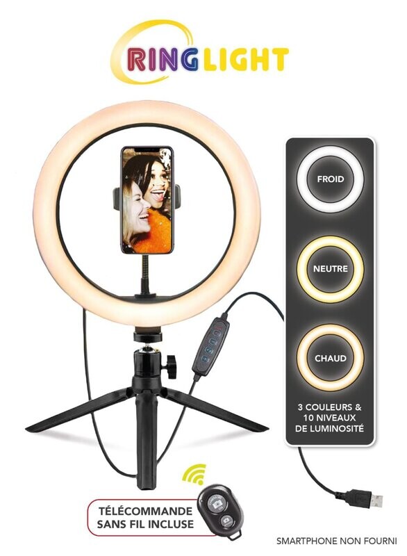 RING LIGHT 25 CM 3 COULEURS TREPIED + TELECOMANDE SANS FIL *
